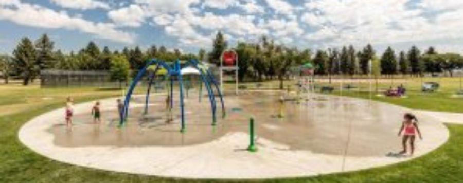 The Taber Spray Park is open daily from 10 AM to 9 PM during the summer.