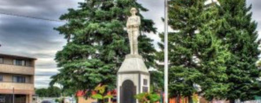 A local veteran Thomas Love posed for the picture, the photographs were then sent to Italy, where Master Sculptors completed what is said to be one of the most perfect replica of a Canadian Soldier.