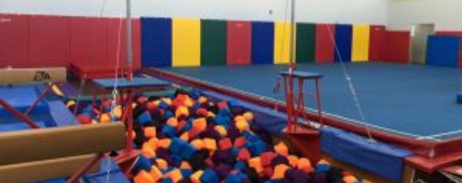 Our new facility includes a large matted floor, in-ground tumble track and in-ground trampoline with ceiling mounted harness, large foam pit, rope and silk suspended from the ceiling above the foam pit, rings, beams, bars, vault, and much more.
